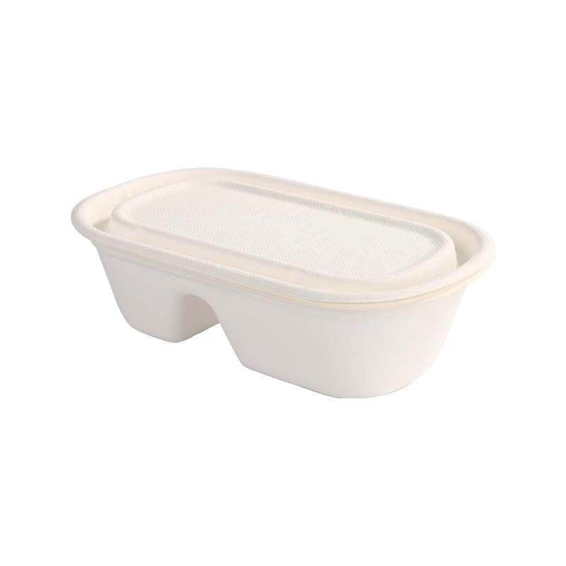 首頁 / 產品 / 甘蔗渣食品容器 / 可用性強兩格容器/800ml帶蓋